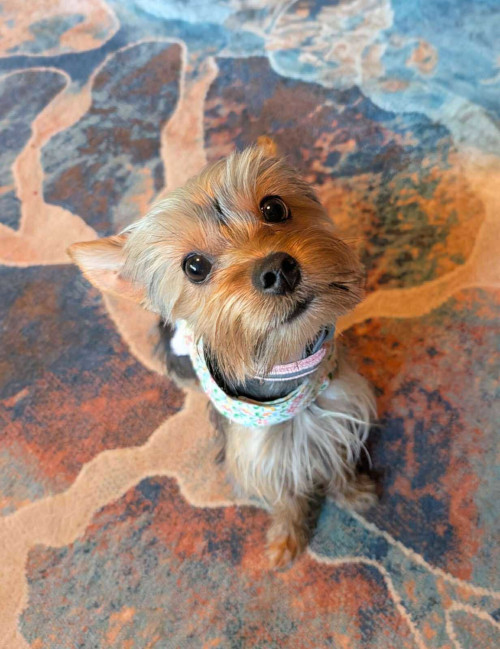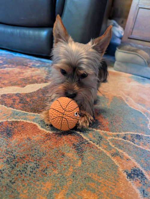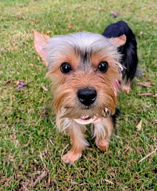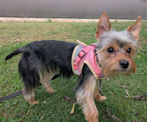 Hi everyone my name is Lainey Brook. I’m a VERY ACTIVE 10-month-old Black/Tan female Yorkie mix. I weigh in at 7 pounds. I have a very busy agenda so I must have things to keep me entertained such as long walks (I do well on a leash/harness), chew toys, and playing ball. I must have a very active adult home with everyone sure-footed so no one gets hurt. Children need to be gentle and at least 10 years of age because of my size. I sleep quietly crated at night in my foster mom’s room. I’m too young just yet to sleep in the big bed—I would probably get into some kind of trouble during the night. I’m still working on my house training and doing well– I’ll need someone home most of the day to continue my routine. During the day when I potty outside I earn the right to roam the house. When my foster mom needs to leave the house for a few hours, I’m in my crate to keep me safe and accident free. I do bark during this time –she watches me on her sneaky spy camera. Because I have a loud bark at times, apartment or condo living would not be good for the neighbors close by.