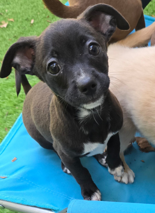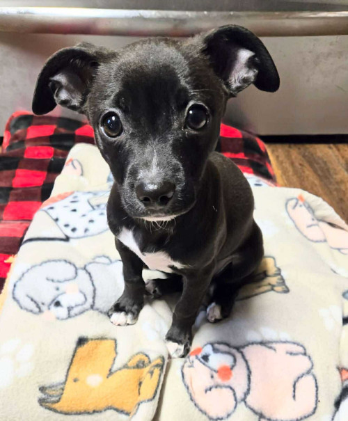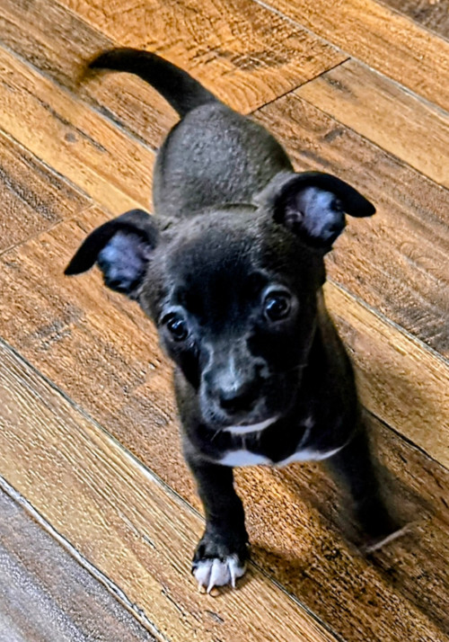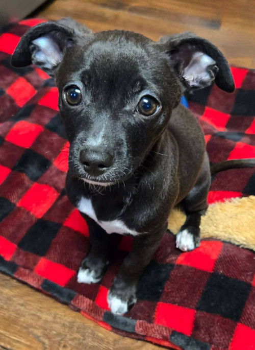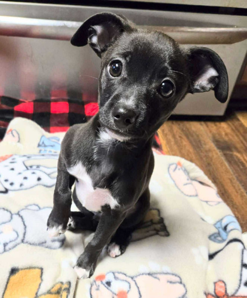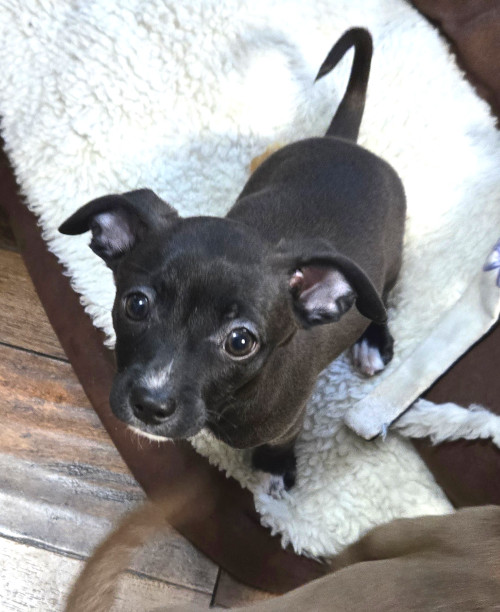 Hi everyone, I’m a 3.5-lb, 3-month-old Chihuahua mix guy named Link! (Yep, if you adopt me you can change my name 😆) I am a sweet, funny, healthy, high energy, playful little boy with a black coat so shiny it makes my sisters jealous. Seriously I’m so handsome! Sometimes I think my name is “Don’t” because my foster mom is always saying “don’t eat that, don’t potty there, don’t chew on that!” But I have to because I’m a puppy and that’s my job! She doesn’t get mad though because she knows I’m only going to be a puppy for a minute and then I’ll be all grown up and she’s going to wish I was little again. So she scoops me up and gives me kisses all over my whole face and boy do I love that and I give her kisses right back!