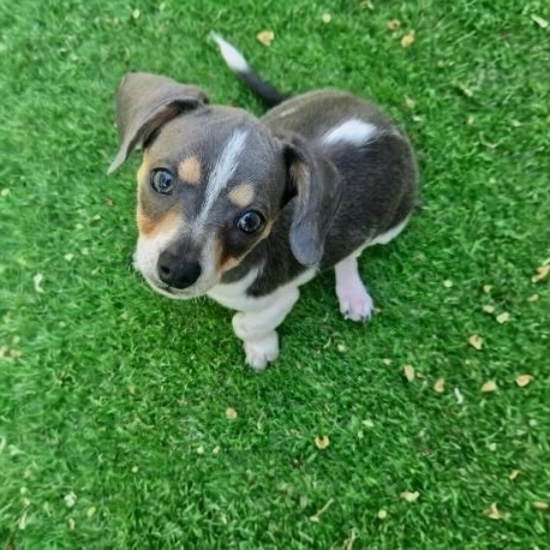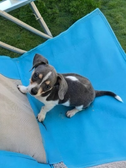 Hey everyone! My name is Mica, and I am a 12-week-old Chihuahua/ Dachshund boy weighing in at 3.4 lb. Nothing unusual about that, so why is everybody so excited about me? It’s all in the fur! Nope, foster mom doesn’t need to adjust her camera, I really am gray and white.