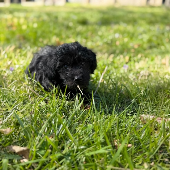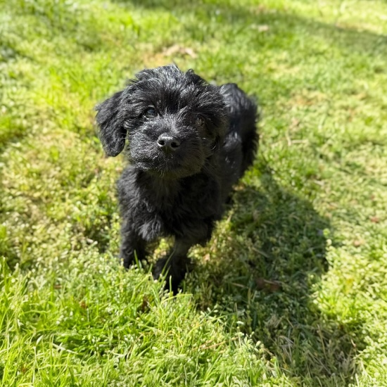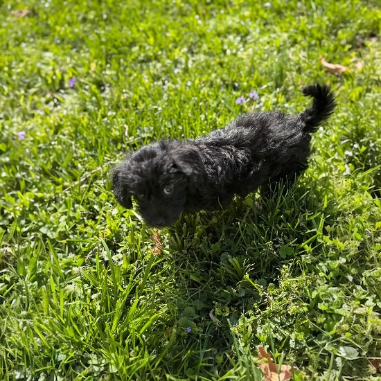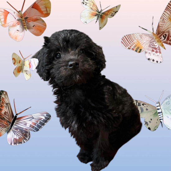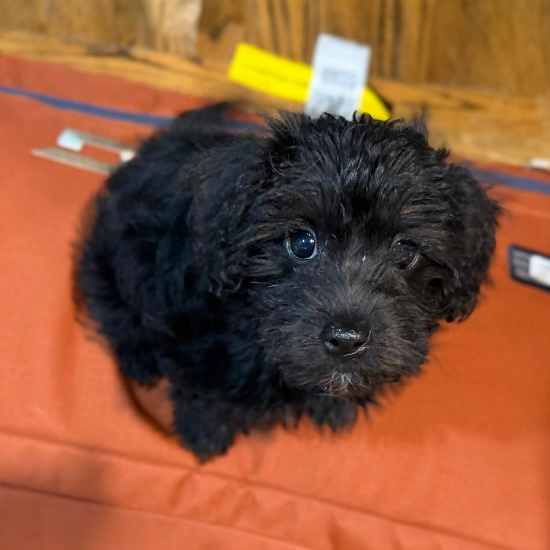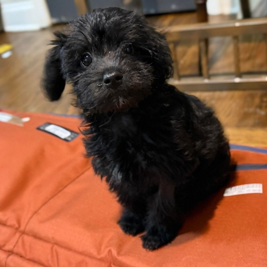 Meet Steve, an 11-week-old black Yorkie–Poodle mix with a sweet personality and a loving nature. At just 4 pounds, he may be small, but he’s full of energy and affection. Steve enjoys belly rubs, playing tug-of-war with his puppy no siblings, and curling up on the couch for snuggles. He’s a happy, easygoing puppy who loves being around people and thrives on attention.