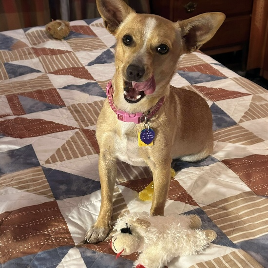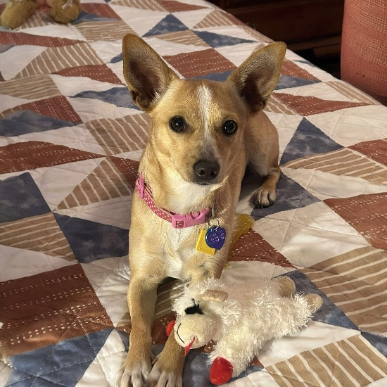Tippy is a sweet, cheerful little girl who’s ready to find her forever family! She’s about a year old, weighs 11 pounds, and is a mostly tan Chihuahua mix with adorable white tips on her feet—hence the name Tippy.