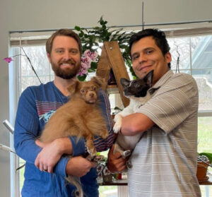 Finn (formerly Dagny) with his new Dads and Best Buddy Chaco